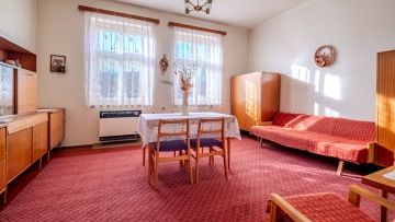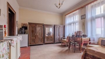 V přízemí je komerční prostor o dvou místnostech, s vlastním vstupem. A další dva pokoje přístupné ze společné chodby. Vytápění v přízemí kamny typu "Petra". V prvním patře jsou dvě bytové jednotky o dispozici 1+1 s velkou jídelnou a 2+kk. Vytápění je zde plynovými kamny typu waw a kamny typu "Petra". V podkroví se nachází dva pokoje a půdní prostory. Dům je napojen na kanalizaci, vodovod, elektřinu a plyn. Stavba je prostorná s vysokými stropy v předrekonstrukčním stavu. Možnost budoucího využití jako dům o několika bytových jednotkách nebo vícegenerační dům. V současnosti je nemovitost neobývána a tedy ihned k dispozici pro realizaci vašeho projektu.