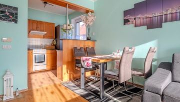 Vytápění je řešeno vlastním plynovým kotlem s termostatem, což umožňuje efektivní regulaci tepla dle potřeby. Velká okna jsou osazena venkovními roletami, které v případě potřeby umožní maximální zatemnění a v horkých měsících byt udrží chladnější.