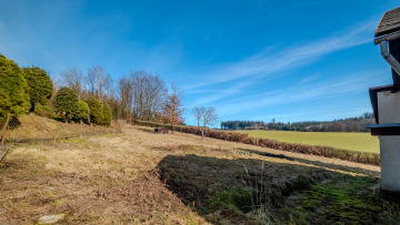 K nemovitosti patří rozlehlý a oplocený pozemek o výměře 1924 m², kde v jižní části máte kousek svého vlastního lesa. Zahrada je mírně svažitá a nabízí obrovský potenciál pro relaxaci, zahradničení nebo prostě jen vychutnání klidu na samotě v přírodě. Nemovitost je zařízena tak, jak je vidět na fotografiích, a je ihned volná k nastěhování.