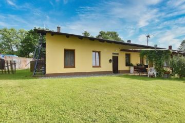 Nachází se v přízemním bytovém domu o 3 bytových jednotkách. Byt má svůj vlastní vchod s jižní orientací a zajišťuje tak dostatek světla během celého dne. Naleznete zde prostorný obývací pokoj s kuchyňským koutem, ložnici a dva menší pokoje, koupelnu se sprchou a WC a chodbu. K bytu ještě náleží zmíněný podíl na pozemcích. Každý má k užívání svou zahradu a prostor před domem. Díky tomu je zde parkování přímo u vchodu, vlastní plechová garáž a prostor pro relax, grilování a zahradnické fantazie.